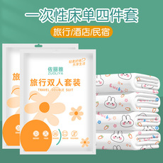 棉芽一次性床单被罩枕套旅行隔脏四件套双人床上用品便携套装5包