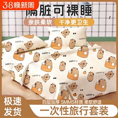 小熊猫一次性床单被罩枕套床上四件套旅行出差酒店加厚单双人隔脏