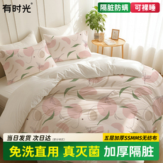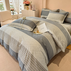 A类裸睡纯棉针织天竺棉简约条纹保暖舒适双人被子卧室床上用品