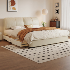 尚品宅配政府补贴奶油风真皮床 现代简约高端双人婚床 2025新款设