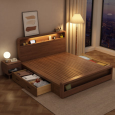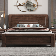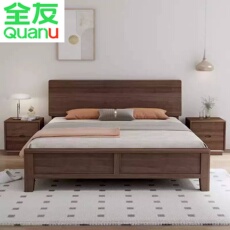 全友家居胡桃木现代中式双人床主卧1.8米简约储物加厚实木床2米x2