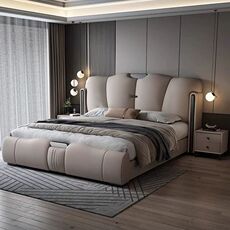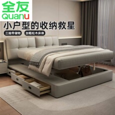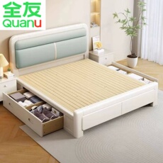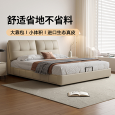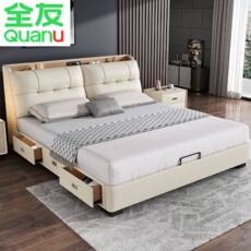 全友家居官网真皮床1米8双人床卧室2025新款可储物功能软包皮床