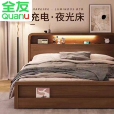 全友家居北欧简约实木床 1.5m双人床架带储物空间 橡胶木床组