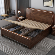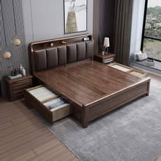 全友家居官网黑胡桃木全实木床1.8米双人床现代简约1.5米大床储物