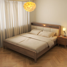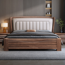 尚品宅配胡桃木实木床软靠床1.8米中式现代简约双人床1.5米轻奢主
