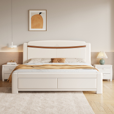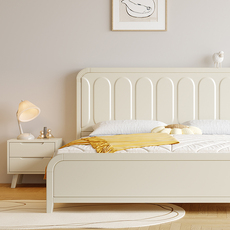 全友家居全实木床现代简约白色1.8m奶油风双人轻奢1米5北欧主卧软