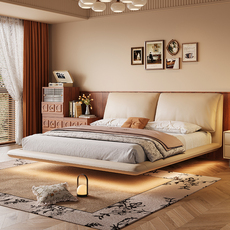 金可儿卡琳达悬浮床侘寂风真皮床主卧双人大床高档带灯奶油风软包