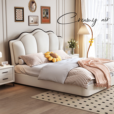尚品宅配法式奶油风真皮床现代简约头层牛皮1米8双人主卧大床轻奢