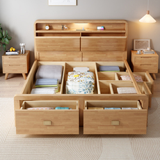 橡木床全实木高箱收纳床悬浮床1.2米单人床1.8双人床无床头榻榻米