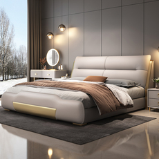 全友家居意式极简真皮床现代简约主卧大床高端大气奶油风卧室双人