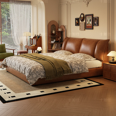 尚品宅配意式极简真皮床现代简约主卧大床高端大气奶油风卧室双人