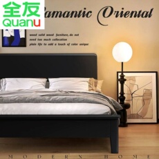 全友家居官网北欧实木床现代简约黑色复古主卧双人床1.8m1.5m高箱