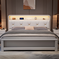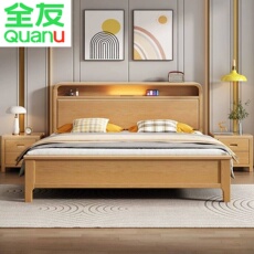 全友家居北欧实木床1.8软靠带夜灯双人床1.5m1.35现代简约小户型1