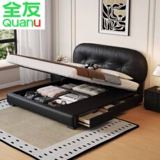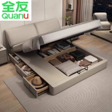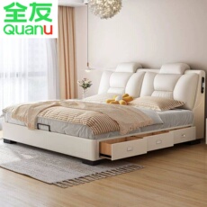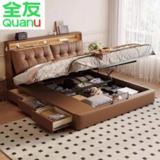 全友家居官网真皮床现代简约轻奢主卧室大床双人床多功能储物皮艺