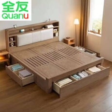 全友家居官网实木床白蜡木抽屉式储物双人床北欧风格实木两米乘两