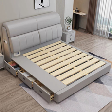 尚品宅配轻奢真皮双人现代简约小户型床带保险柜1.8米三抽储物主