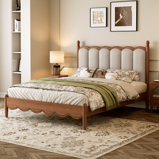 全友家居法式复古实木床主卧1米8双人床现代简约中古风轻奢家用小