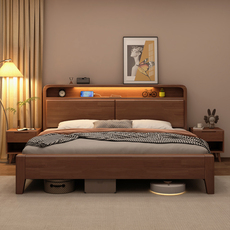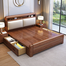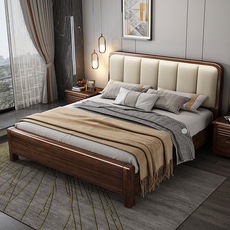源氏木语官网中式实木床软靠现代简约双人床1米8胡桃木加厚1.5米