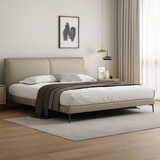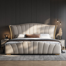 全友家居2025高端轻奢真皮床主卧双人床大床意式现代简约极简软包