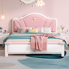 全友家居美式轻奢实木床现代简约白色1.8米双人床公主床单人1.2储