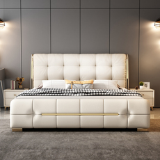 金可儿真皮床双人床现代轻奢婚床2米x2米主卧室大床高端大气家用