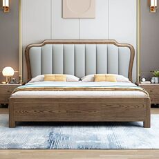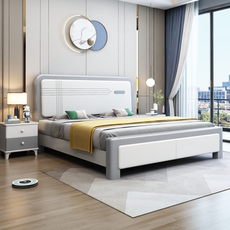 尚品宅配北欧实木床现代简约全实木极简双人主卧真皮软靠小户型高
