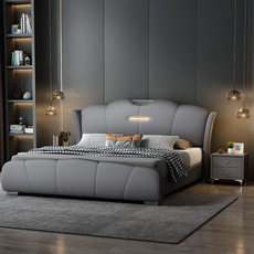 尚品宅配莱卡意式极简真皮床现代简约双人床主卧ins风小户型头层