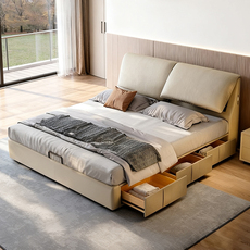 金可儿真皮床主卧高端大气储物皮艺床带收纳抽屉现代简约软包双人
