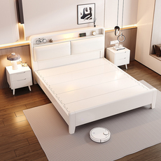 尚品宅配白色实木床1.5米现代简约床主卧1.8米奶油风储物双人床1.