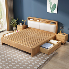尚品宅配北欧实木床现代简约双人主卧大床1.8米卧室储物箱体床1.5