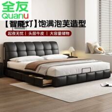 全友家居官网现代简约真皮床泡芙床1.8M双人床主卧高端大气2025新