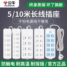 公牛插座长线学生宿舍家用3米5米接线板带线多孔多功能拖线板插排