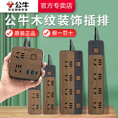 公牛插座面板木纹家用高颜值复古带线插排插线板接线板插板拖线板