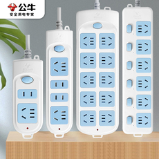 公牛插座蓝白色学生宿舍多孔位家用电源接线板插排插线板带线长线