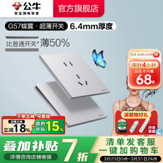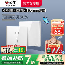 公牛蝶翼超薄G57开关五孔插座16a大师面板家用奶油风墙壁亮面白