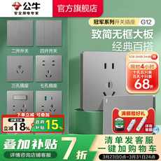 公牛官方旗舰店插座面板家用公牛开关5孔插座面板g12灰色