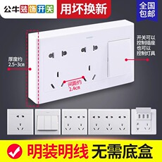 公牛明装插座一开十孔插座超薄家用86型明线明盒带开关双五孔面板