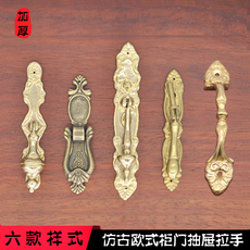 仿古黄铜长条拉手欧式家具配件红木衣橱柜门五金铸造单孔吊坠把手