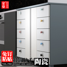 荣燊免钉橱柜门拉手抽屉把手ins风糖果色挂钩奶油自粘陶瓷衣帽钩