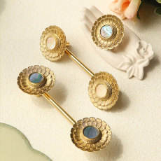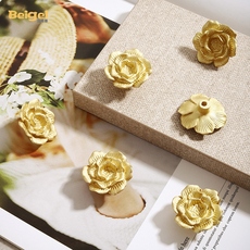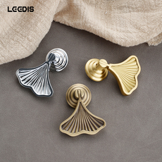 创意银杏叶黄铜拉手柜门抽屉衣柜门单孔北欧柜子法式轻奢金色把手