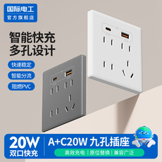 国际电工超薄床头20W快充Type-c充电插座四孔六孔USB五孔开关面板