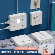 全铜插座超薄扁插头两脚插排插板带USB超级快充2项接线板带夜灯