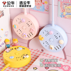 公牛圆形插座可贴墙收纳带usb扩展器高级插排学生宿舍可爱插线板