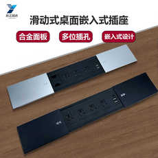 滑盖桌面嵌入式插座双开办公桌隐藏多位5孔岛台柜子内嵌带USB插排