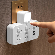插座转换器插头多功能带USB插板家用带小夜灯多孔面板插排插线板