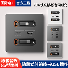国际电工86型USB插座带五孔面板多孔充电快充家用暗装墙壁多功能