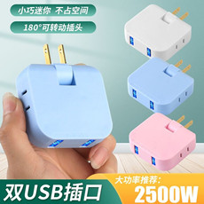 家用排插靠墙扩展电源USB充电器转换插头插线板180旋转插座转换器
