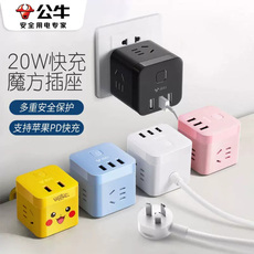 公牛超薄魔方墙插转换器USB一转多孔小插座多用扩展插头PD30W快充