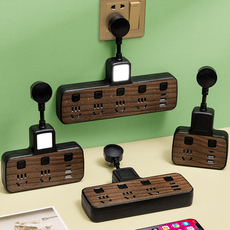木纹家用办公插板全铜带USB插座多功能独立开关插排伸缩藏线插排