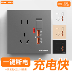 快充86型暗装五孔带usb插座开关面板墙壁家用手机Type-C充电插座